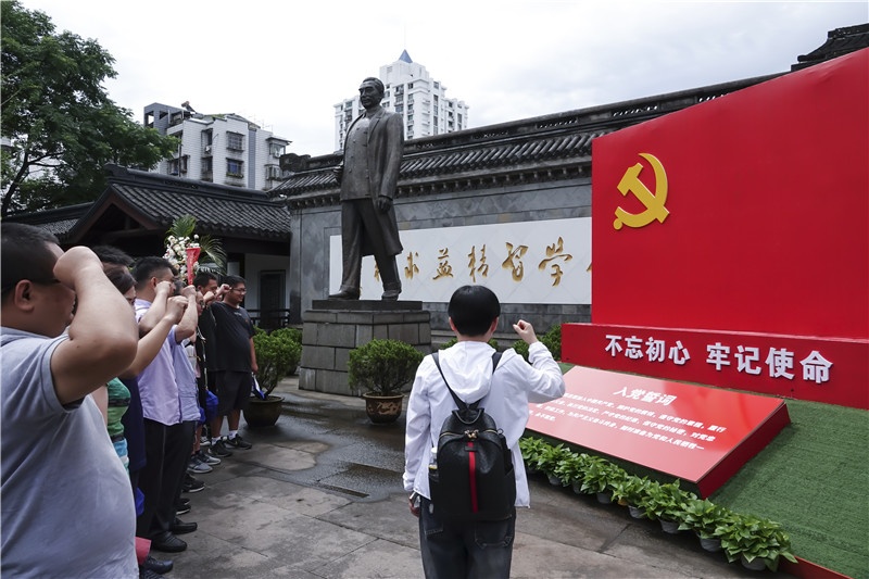 党员们的第一站来到了周恩来祖居,面向党旗郑重宣誓并合影留念,习近平总书记说过:“周恩来是近代以来中华民族的一颗璀璨巨星,是中国共产党人的一面不朽旗帜”,党员们在周总理身上学习到了中国共产党人的崇高精神,感染这一代又一代中国共产党人,党员们来到这里,就是要在工作、学习、生活中学习他的优秀品德,发扬他的优良传统,传承他的精神风貌。