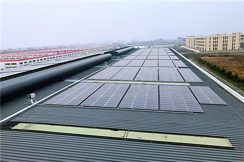 芯能科技专业建设团队具有丰富的现场施工经验,施工过程中不会破坏屋面原有的彩钢瓦结构,并采用轻型铝合金支架,夹具作为光伏支架,能够有效减少屋面负重,延长使用寿命,彩钢屋面平均每平方荷载约11Kg。屋顶分布式光伏发电系统实现了零排放、无污染、无辐射的绿色环保目标,同时光伏组件对屋面有一定的保护作用,既能隔热降温,又能保持屋面美观,提升企业整体形象。