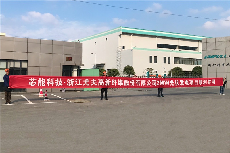 2020年12月14日,由芯能科技投资建设的浙江尤夫高新纤维股份有限公司分布式光伏电站项目经南浔区电力局验收,顺利并网。
