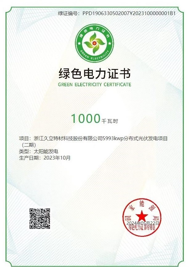 绿色电力证书示例